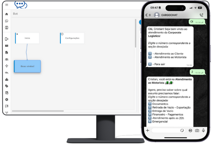 O chatbot é um programa automático que conversa com os clientes como se fosse um atendente real. Ele pode responder perguntas comuns, como horários de funcionamento, formas de pagamento ou informações sobre produtos, sem precisar da ajuda de uma pessoa.